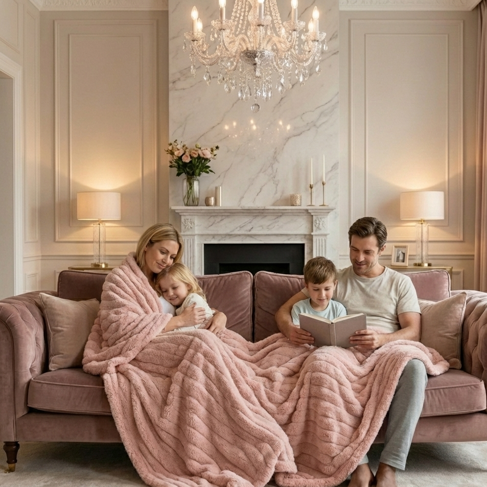 Our blankets are designed with the whole family in mind. From gentle, cloud-like softness that's perfect for a child's delicate skin to the generous size needed for family snuggles on the sofa, we create a space for connection.