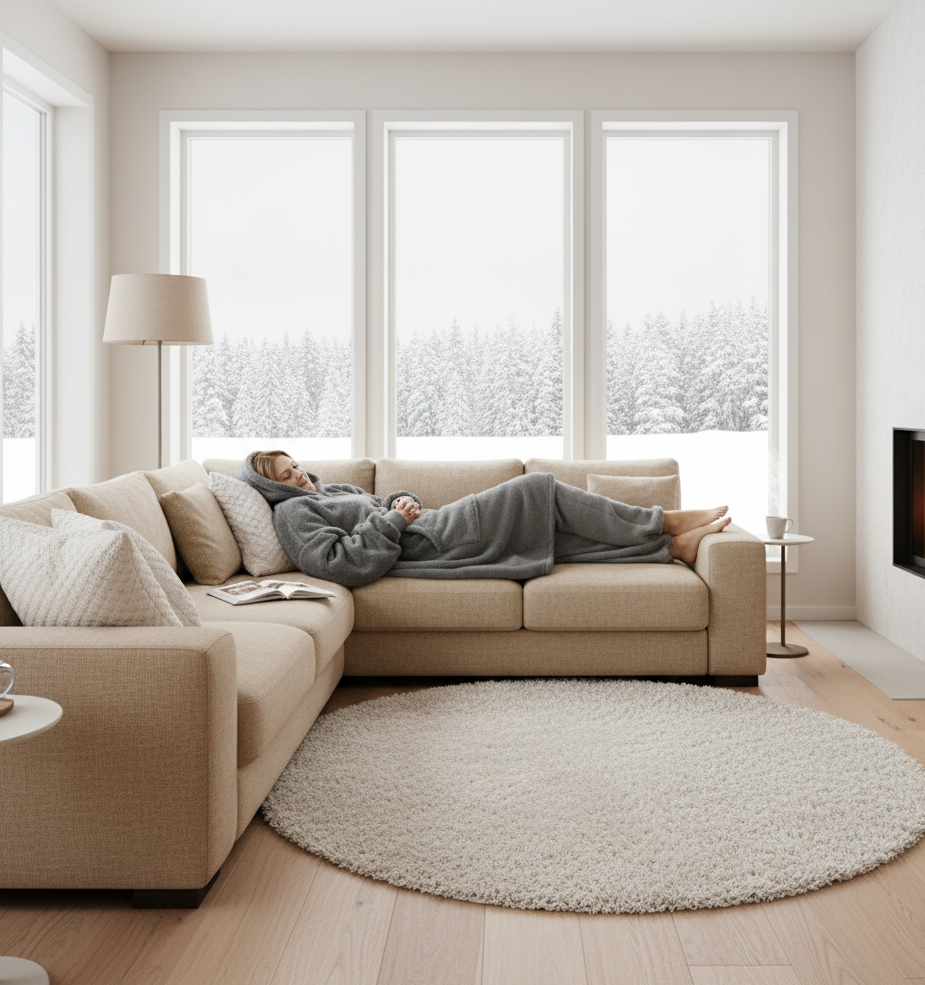 Standard blankets are a hassle—they slip off the moment you reach for the remote or a snack. Most hoodies are simply too thin to keep out the winter chill, leaving you shivering on the sofa despite the heating being on.